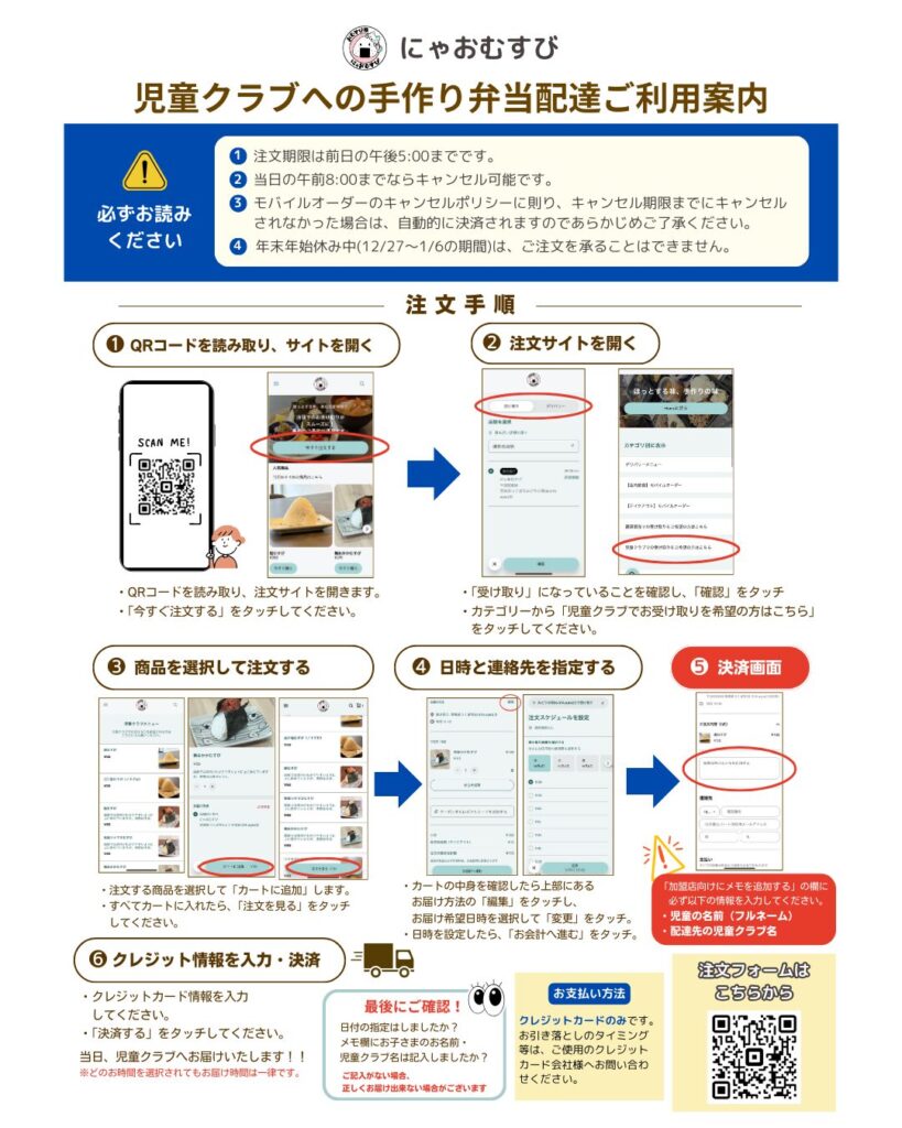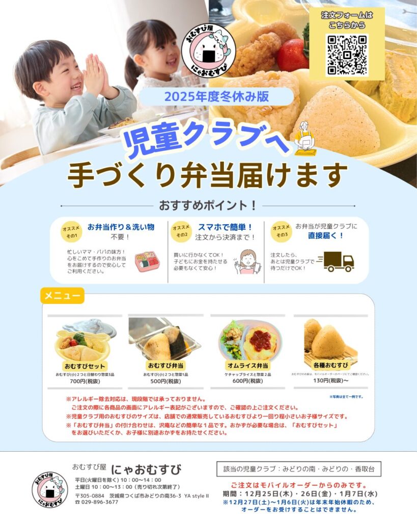 このたび、にゃおむすびでは 児童クラブへの手作り弁当の配達サービス をスタートいたします。