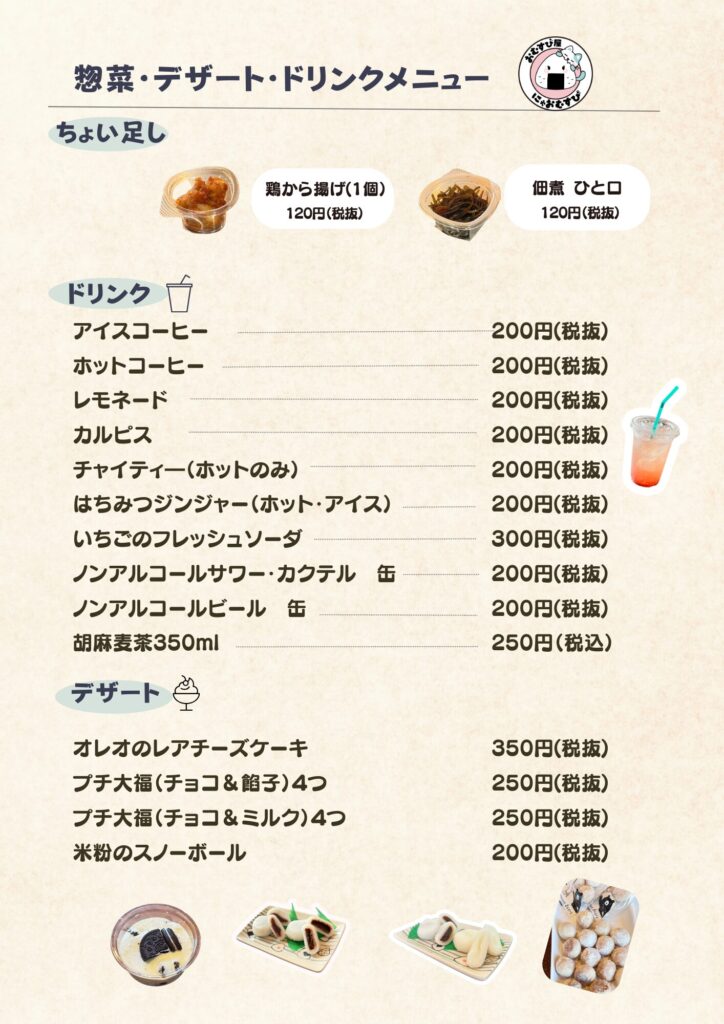 こちらは 価格を一部見直した後のメニュー表 になります。
