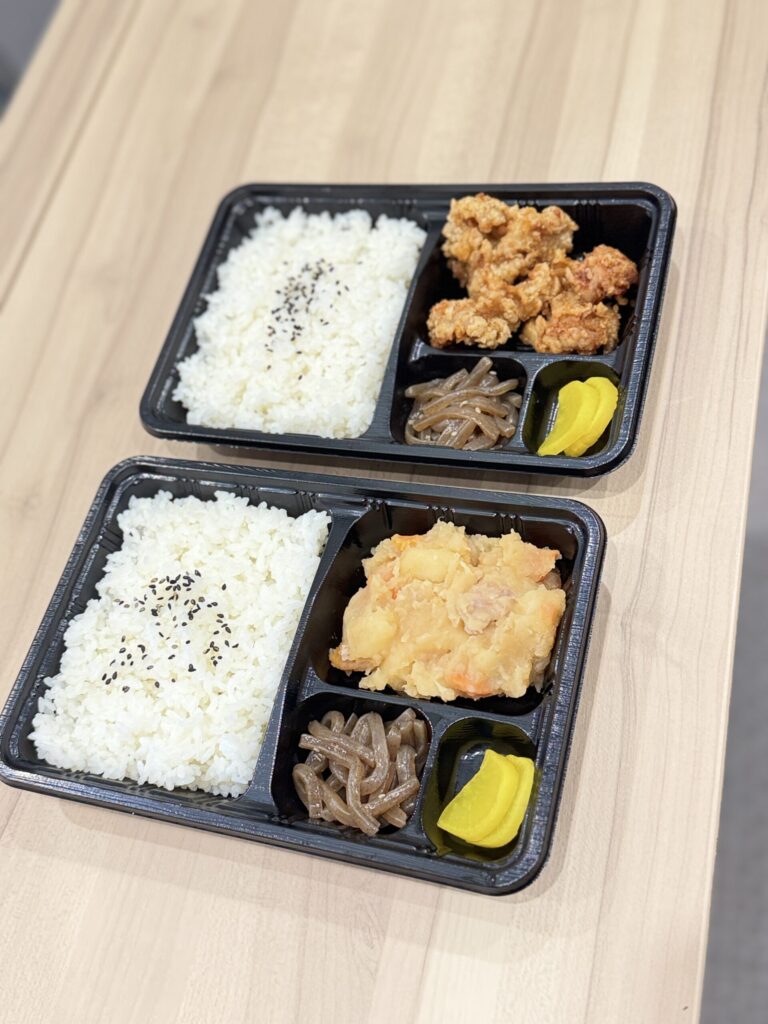 ママやパパのおむすび2個とお子様の小さなおむすび2個、本日の惣菜3品(1.5倍量)のセットです。